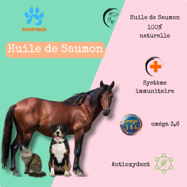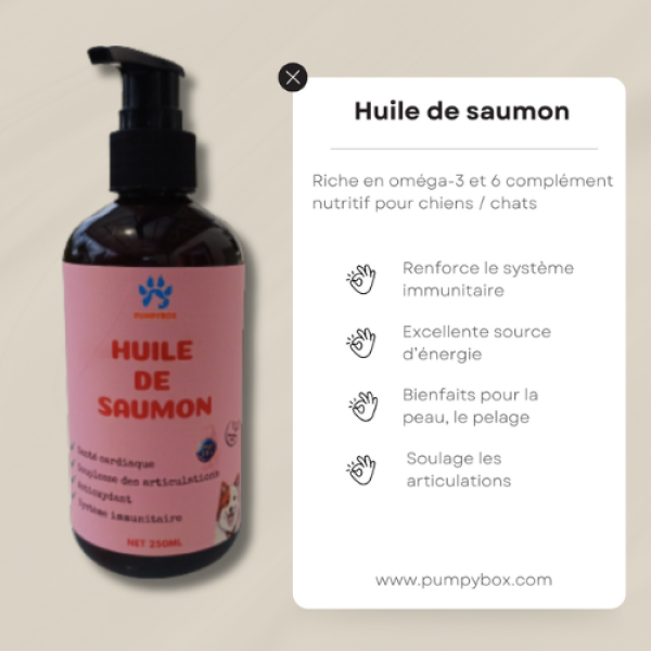 L'huile de saumon Pumpybox est un complément alimentaire de choix pour la santé de vos animaux, quel que soit leur âge.